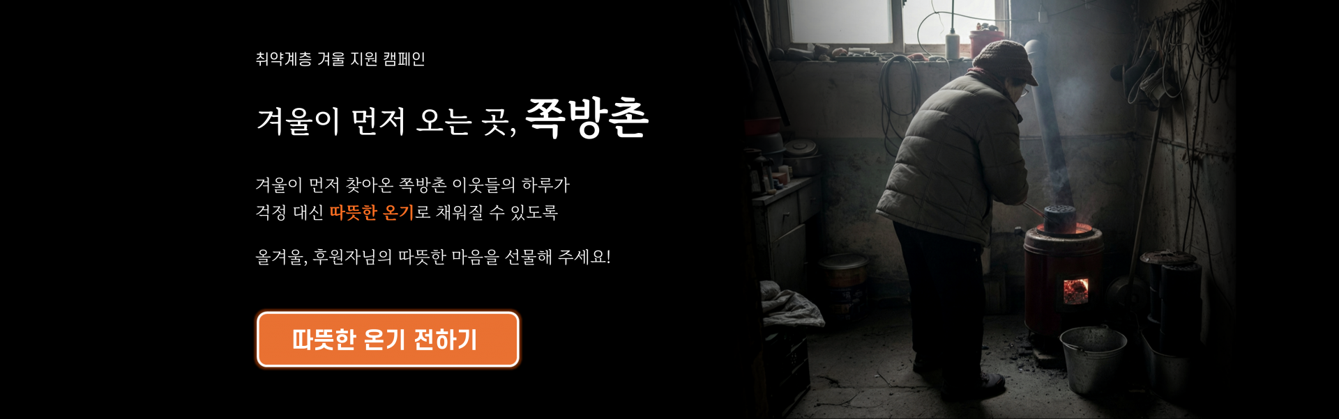후원자님, 안녕하세요! 눈이 오고 부쩍 추워진 날씨에 집 안 난방과 전기장판을 켜게 되는 요즘입니다. 각 가정의 월동 준비는...