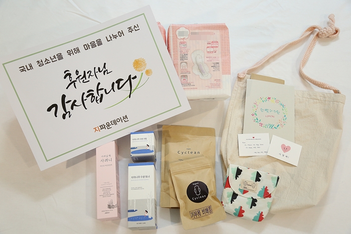 이번에 지원된 키트 속에는 소녀들이 3개월 동안 사용할 수 있는 생리대뿐만 아니라 생리팬티, 스킨케어제품, 생리대 파우치, 여성청결제, 에코백이 함께 들어가 있습니다.