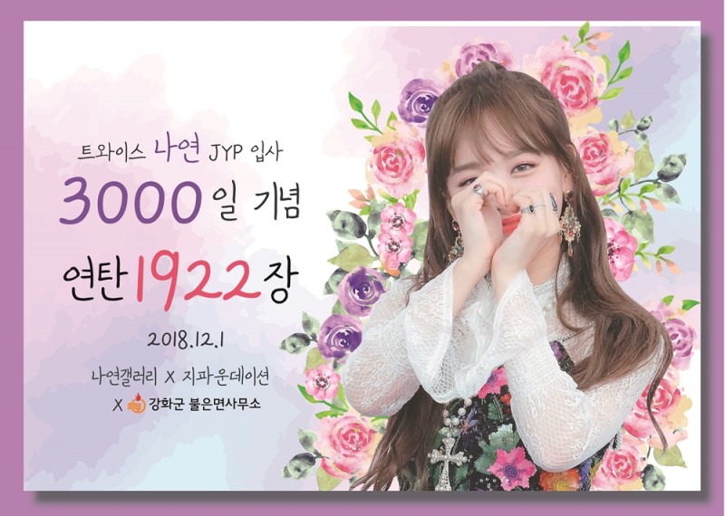 이번 기부는 트와이스 나연양의 JYP입사 3,000일이 되는 12월 1일을 기념하여