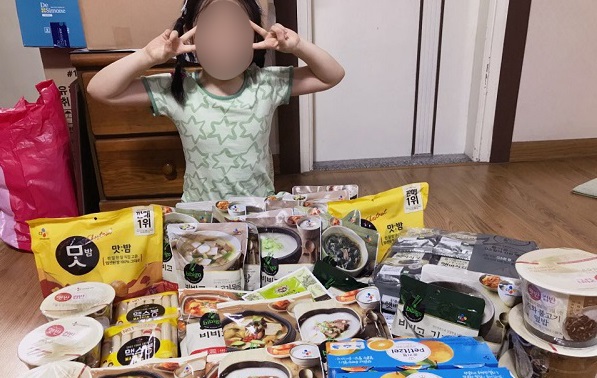 '어떤 음식을 전달해야 엄마와 아이가 기뻐할까?' 고민 끝에 주문한 식료품들.