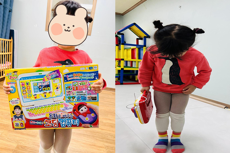 "은혜(가명)가 선물을 받고 너무 신난 모습을 보이고