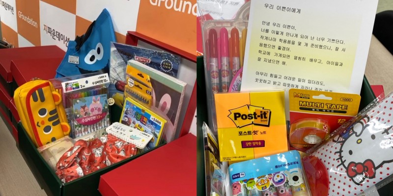 선물상자와 선물금으로 학용품이 가득 담긴 선물상자를 전달하는 캠페인이었는데요!