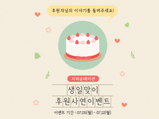 지파운데이션 뉴스레터 제공을 위한 개인정보 수집 및 이용 동의 1. 수집목적 : 지파운데이션 소식 및 후원관련 소식 제공 2. 수집항목 : 성명, 이메일주소 3. 보유기간 : 수신거부시 지체 없이 파기 * 수집을 거부하실 수 있으며, 거부시 뉴스레터 소식이 제공되지 않습니다.
