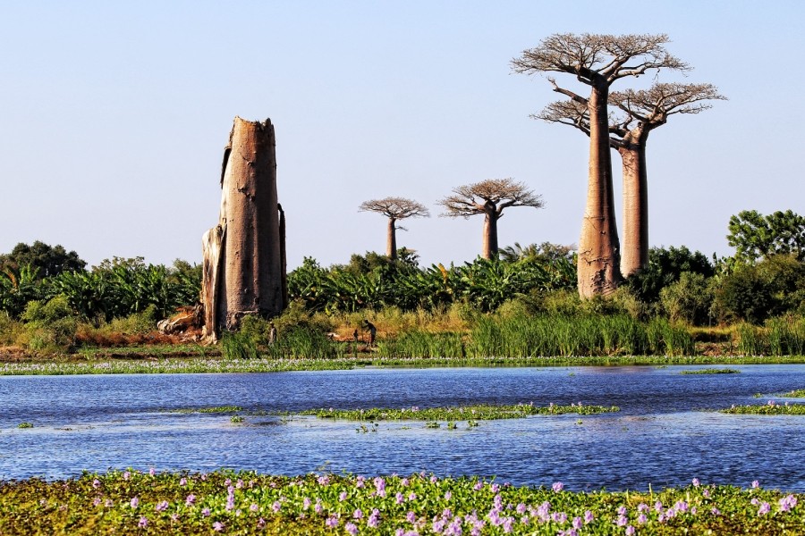 바오밥 에비뉴의 얕은 물가에 부레옥잠꽃이 피어날것이다.