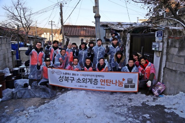 토탈주방용품 전문기업 노블레스웰빙(대표이사 정중섭)은 국제개발NGO 지파운데이션(대표이사 박충관)과 올해 특별한 송년회를 열었다. 송년회 예산으로 성북구 정릉3동 소외계층을 위해 연탄 3,500여 장을 기부했다. 지난 폭설로 노면이 얼어붙어 연탄배달 차량이 배달할 수 없는 상황이 되자, 21일 오전 노블레스웰빙 임직원들이 직접 연탄배달에 나섰다.