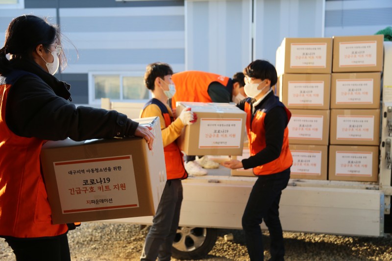 지난 5일 대구지역 아동들을 위해 전달한 긴급구호 키트 100상자 지원에 이어