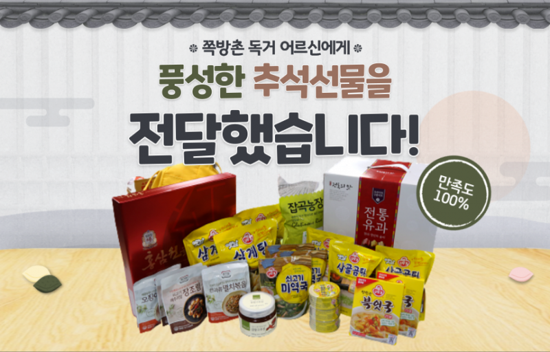 나눔후기 | 쪽방촌 독거어르신에게 풍성한 추석선물을 전달했습니다! 페이지 정보 작성일20-09-29 13:41 조회14,087회 댓글0건 이전글 다음글 목록 본문 댓글목록 등록된 댓글이 없습니다. 이전글 다음글 목록