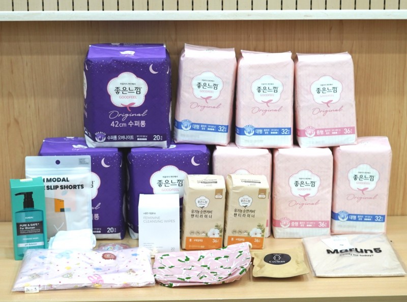 아이들에게 생리기간에 필요한 물품이 어떤 것인지 수요조사를 통해 생리대 물품을 구성하였습니다.