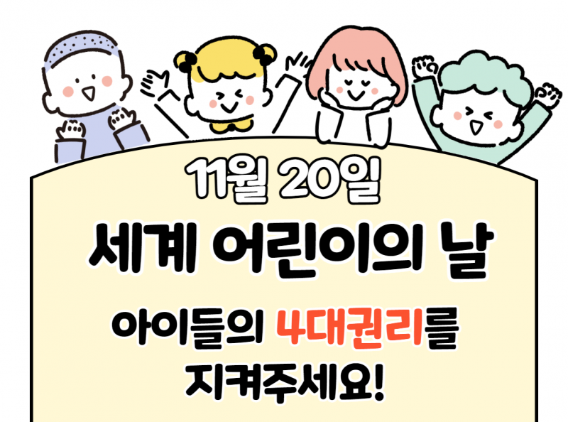 11월 20일을 '세계 어린이의 날'로 지정하였는데요!