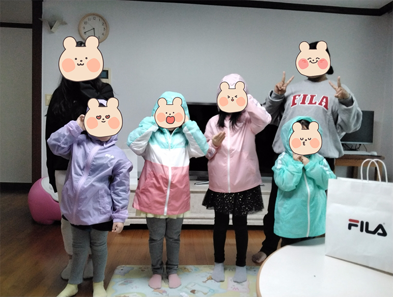 갖고 싶었던 옷을 선물받고 행복해하며 옷을 입고 모델처럼 포즈를 취했다는 아이들.