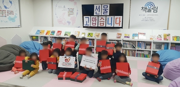 아동들이 선물상자를 받으며 특별함을 느끼고 만족하는 모습을 보였습니다!“