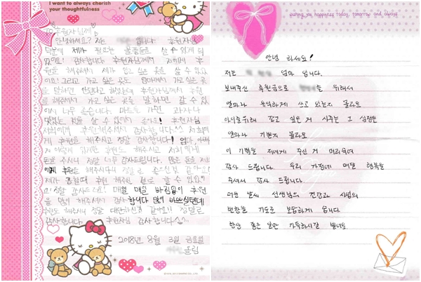 결연아동들의 감사편지