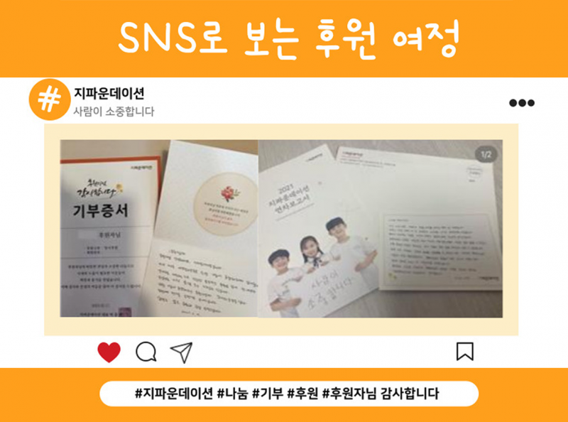 SNS에는 후원자님의 설레는 마음과 후원을 시작하게 된 동기가 가득 담겨있습니다!