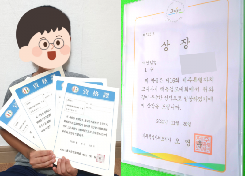 처음 시설에 입소했던 2학년 때 한자 7급을 시작으로,