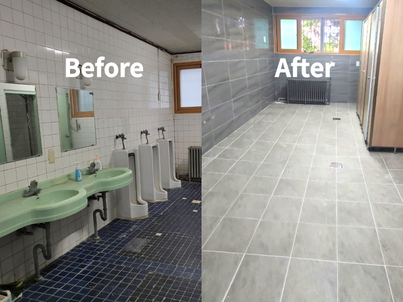 이번 지원을 통해 화장실 내의 타일 전체를 교체하는 대공사를 진행하였는데요.