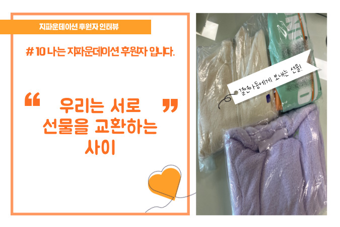후원을 하면서 가장 좋은 건, 많은 걸 포기하지 않고도 많은 걸 나눌 수 있다는 걸 알게 되는 것인 것 같아요.