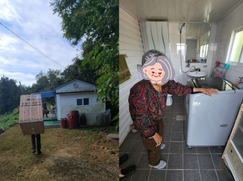 이번 생활비 지원을 통해 댁에 세탁기를 설치해드릴 수 있었습니다.