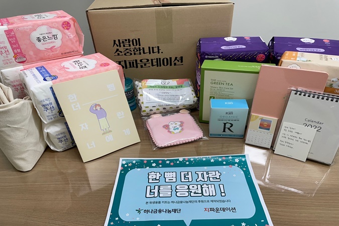 하나금융나눔재단에서 취약계층여성들을 위해 나눠주고 계신 마음.