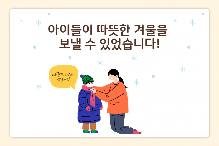 아이들이 따뜻한 겨울을 보낼 수 있었습니다!