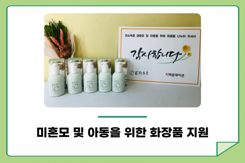 미혼모와 저소득층 아동들을 위한 화장품 전달